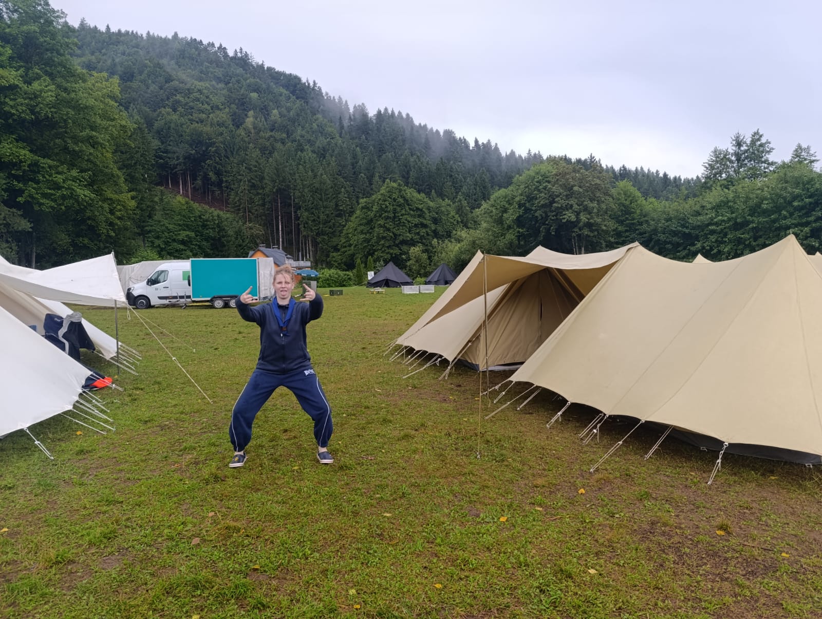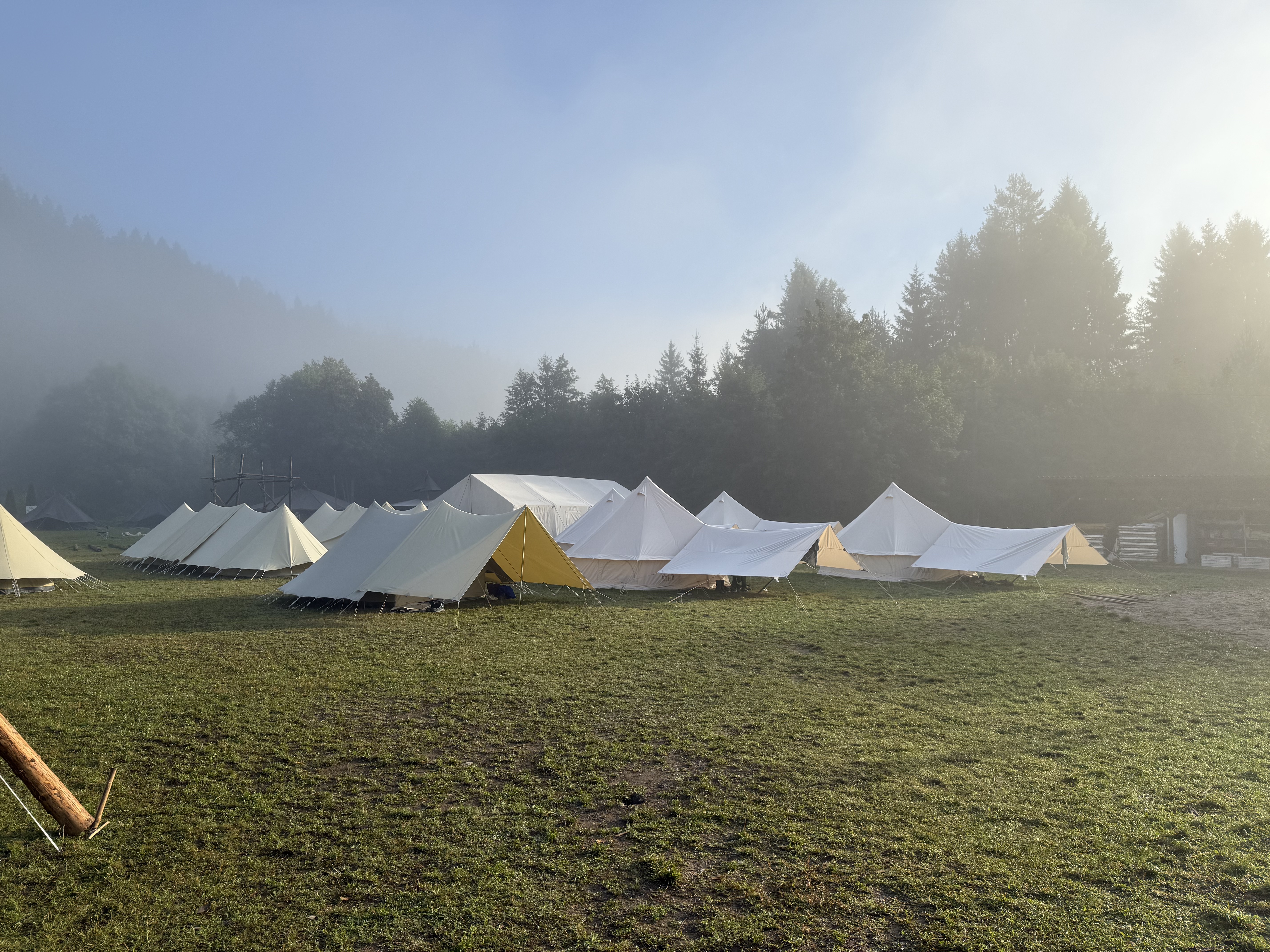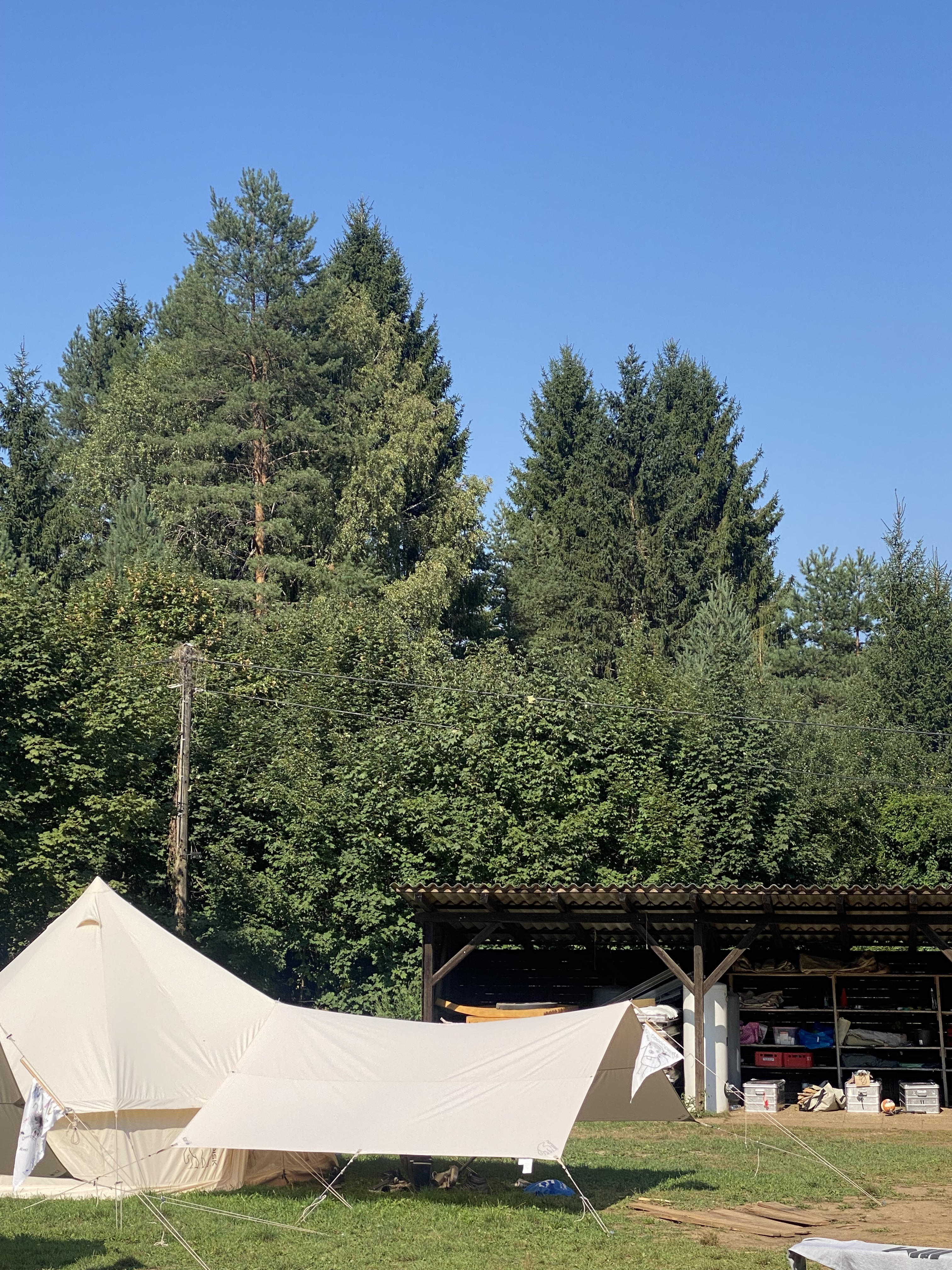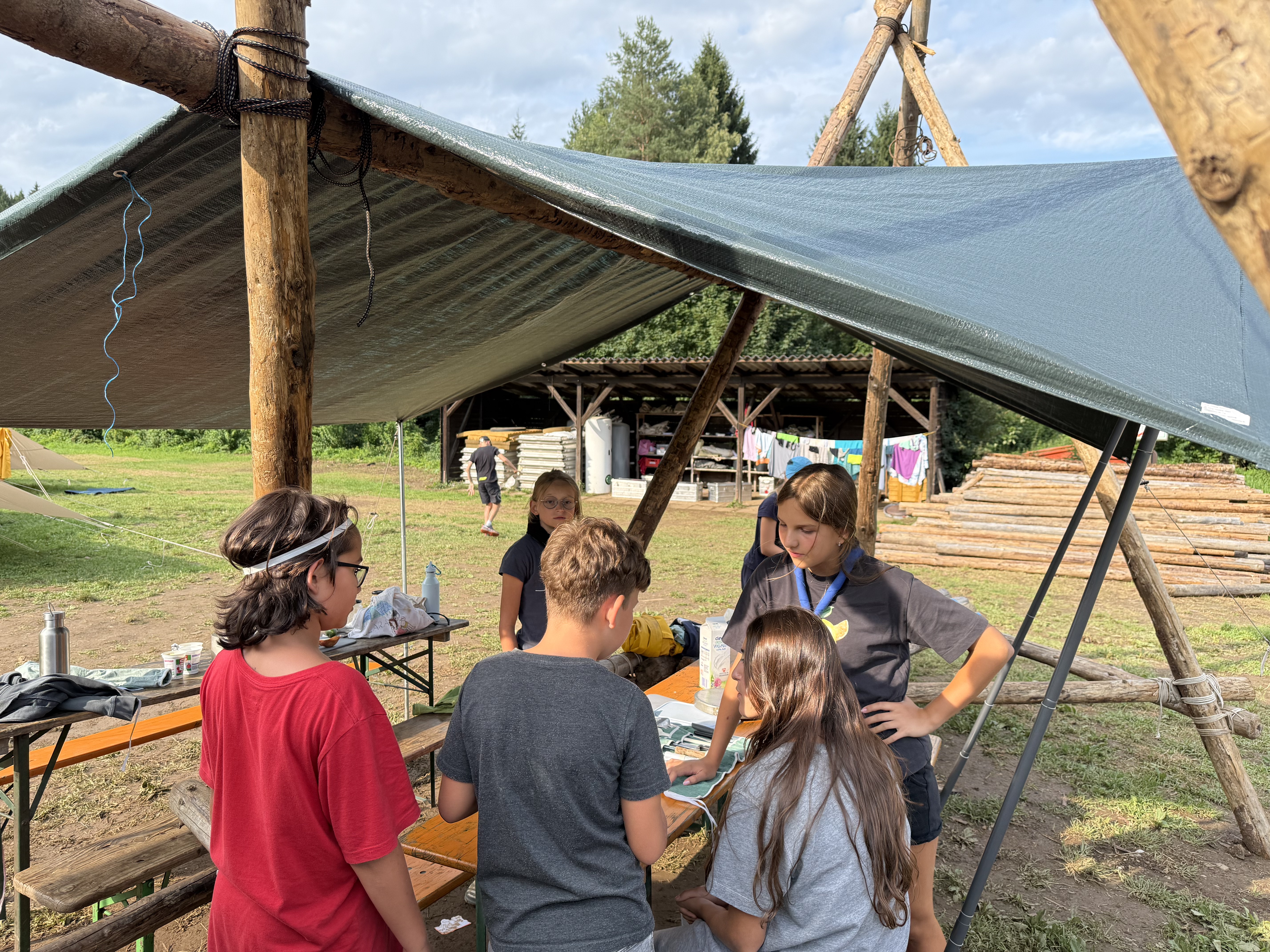 Nach einer langen Anfahrt kamen wir leider voll in den Regen. Aber dank guter Zusammenarbeit haben wir es trotzdem geschafft, heute alle Zelte aufzubauen, sodass jede*r im Trockenen schlafen kann! Insgesamt zwar ein nasser, aber erfolgreicher Start ins Lager.