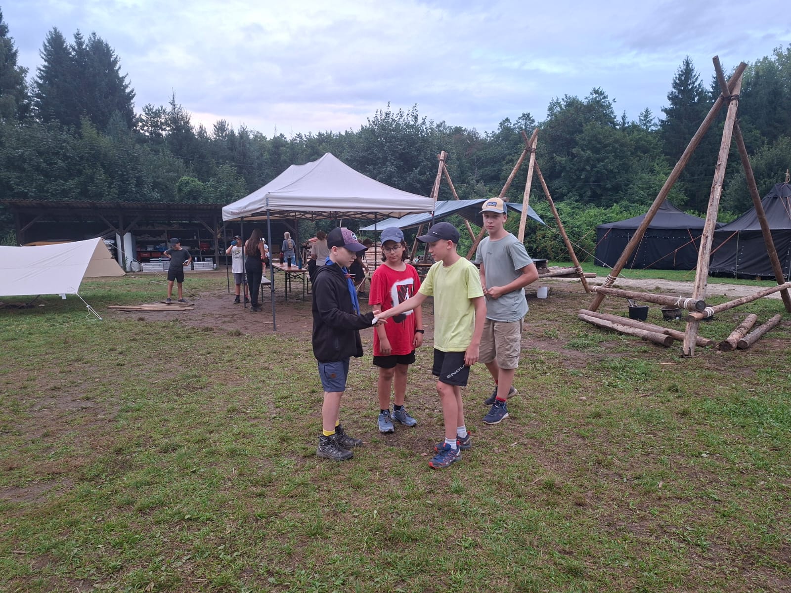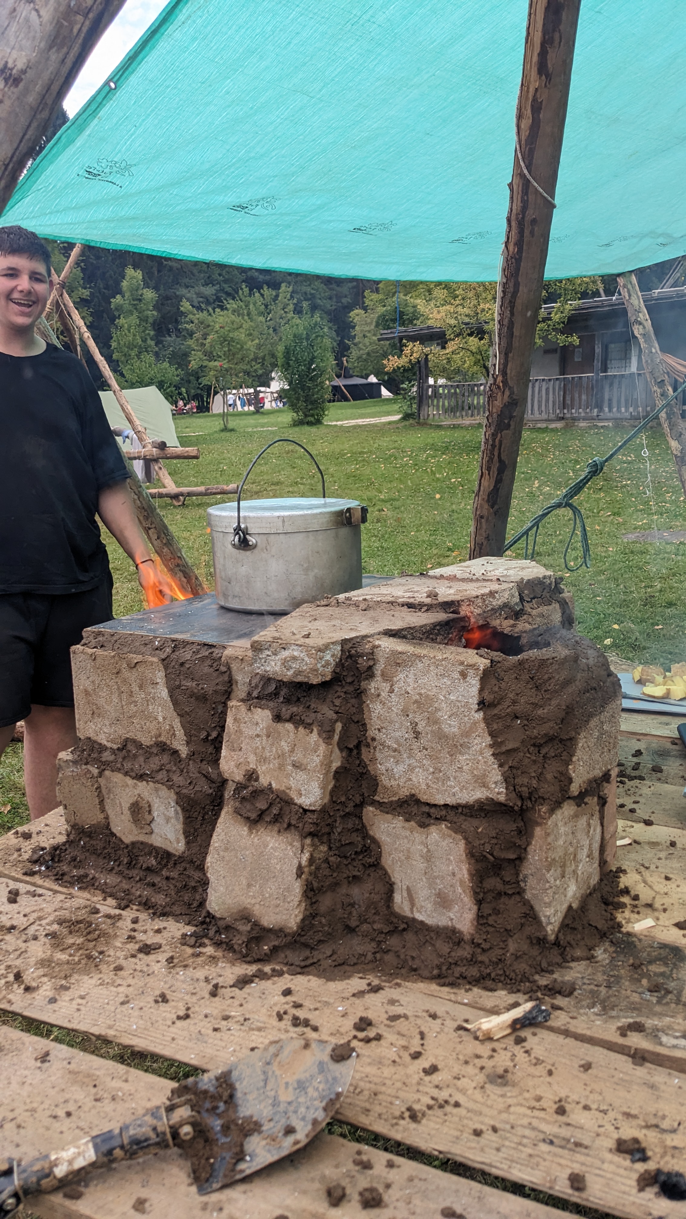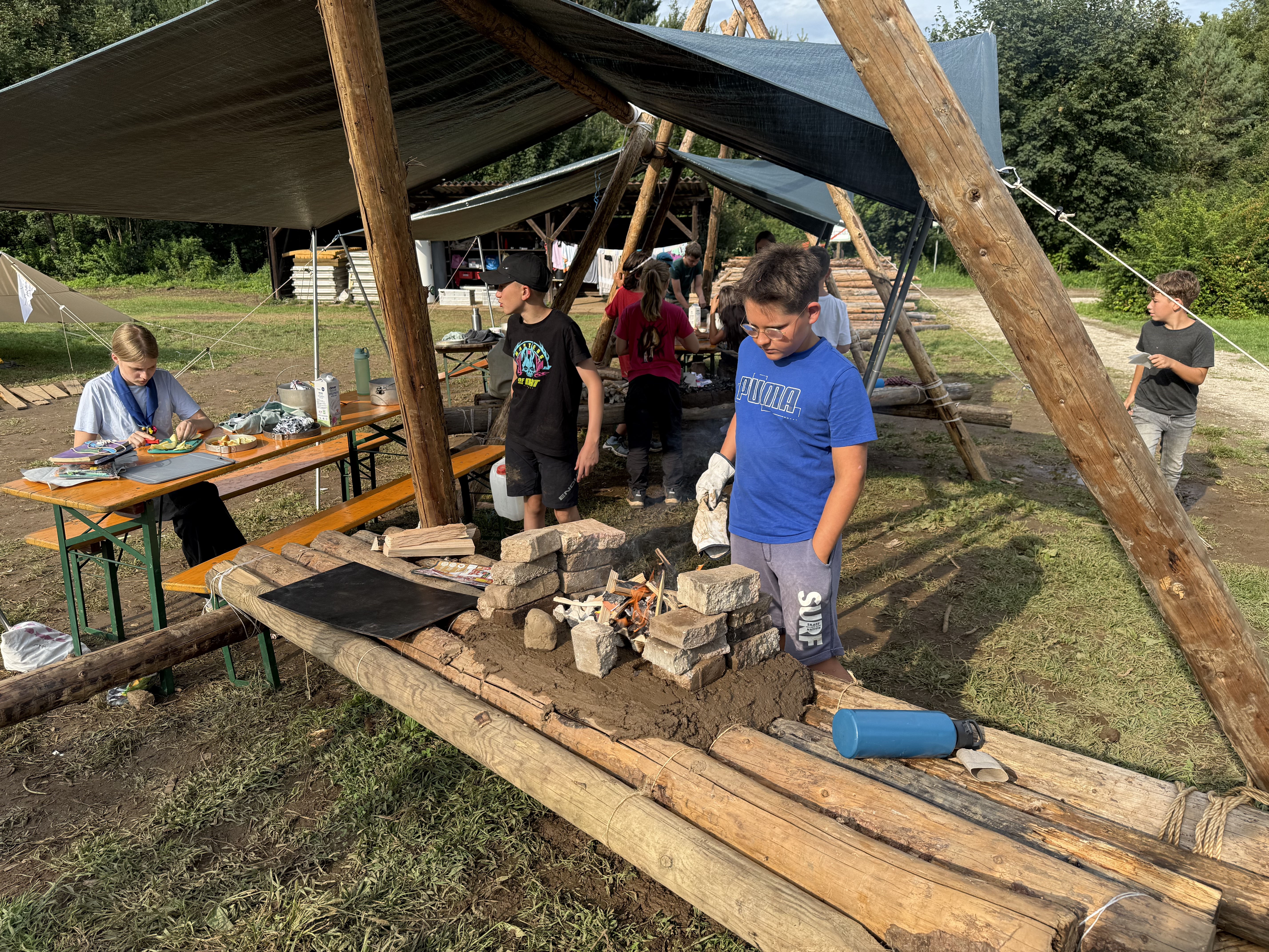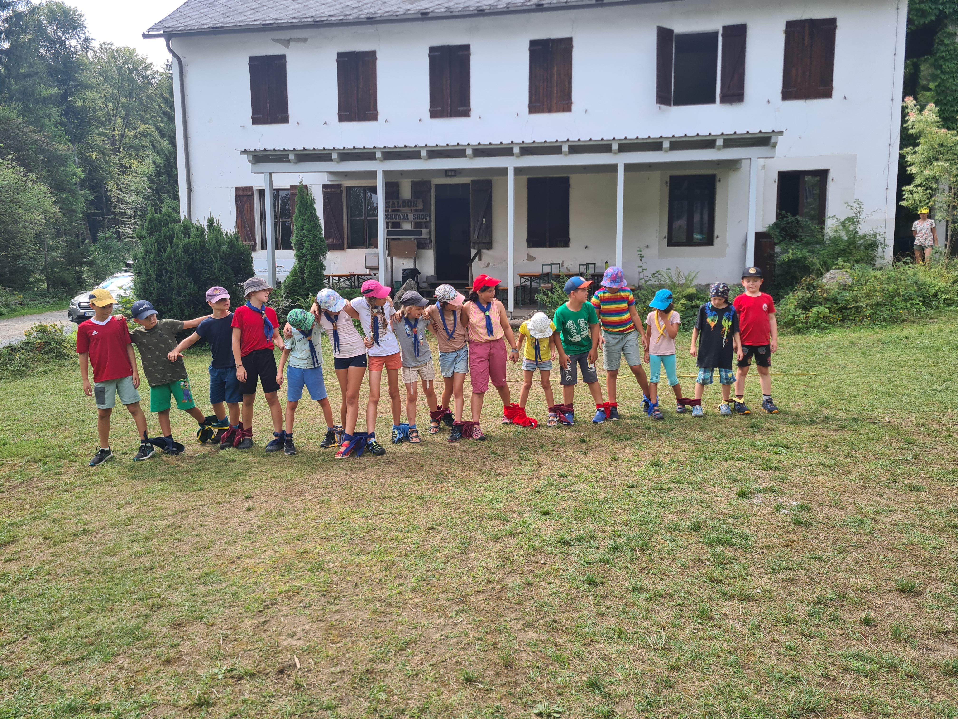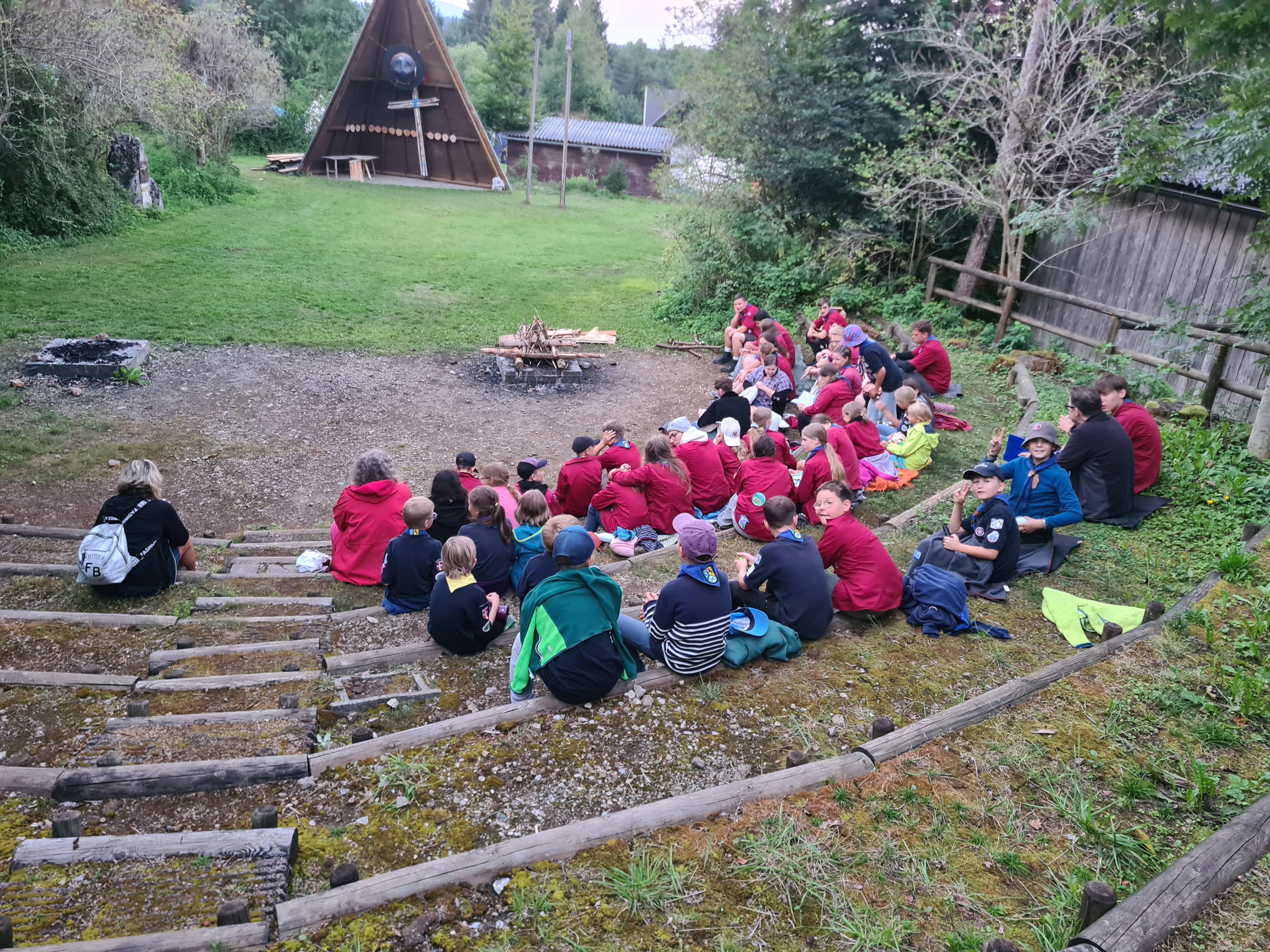 Tja, die Fotos von Montag sind leider erst heute Dienstag in Wien zum Hochladen angekommen – tut mir leid. Umso schöner sind die Bilder! Während die Guides und Späher ihre Doppel-Kochstelle fertiggestellt haben, haben die Caravelles und Explorer sich im Spiel Taskmaster versucht – leider (oder zum Glück?) ohne Beisein des britischen Fernsehens. Ich hoffe, euch die detaillierten Aufgabenbeschreibungen der CaEx nachreichen zu können.