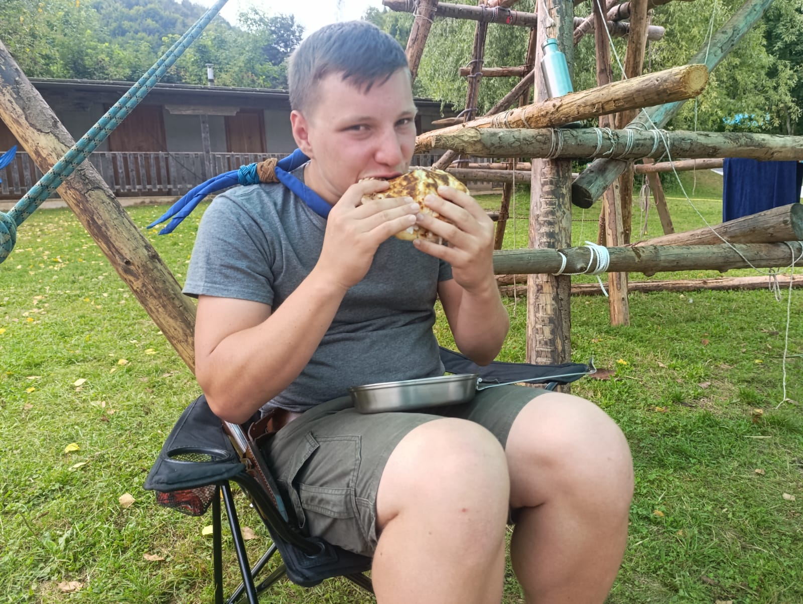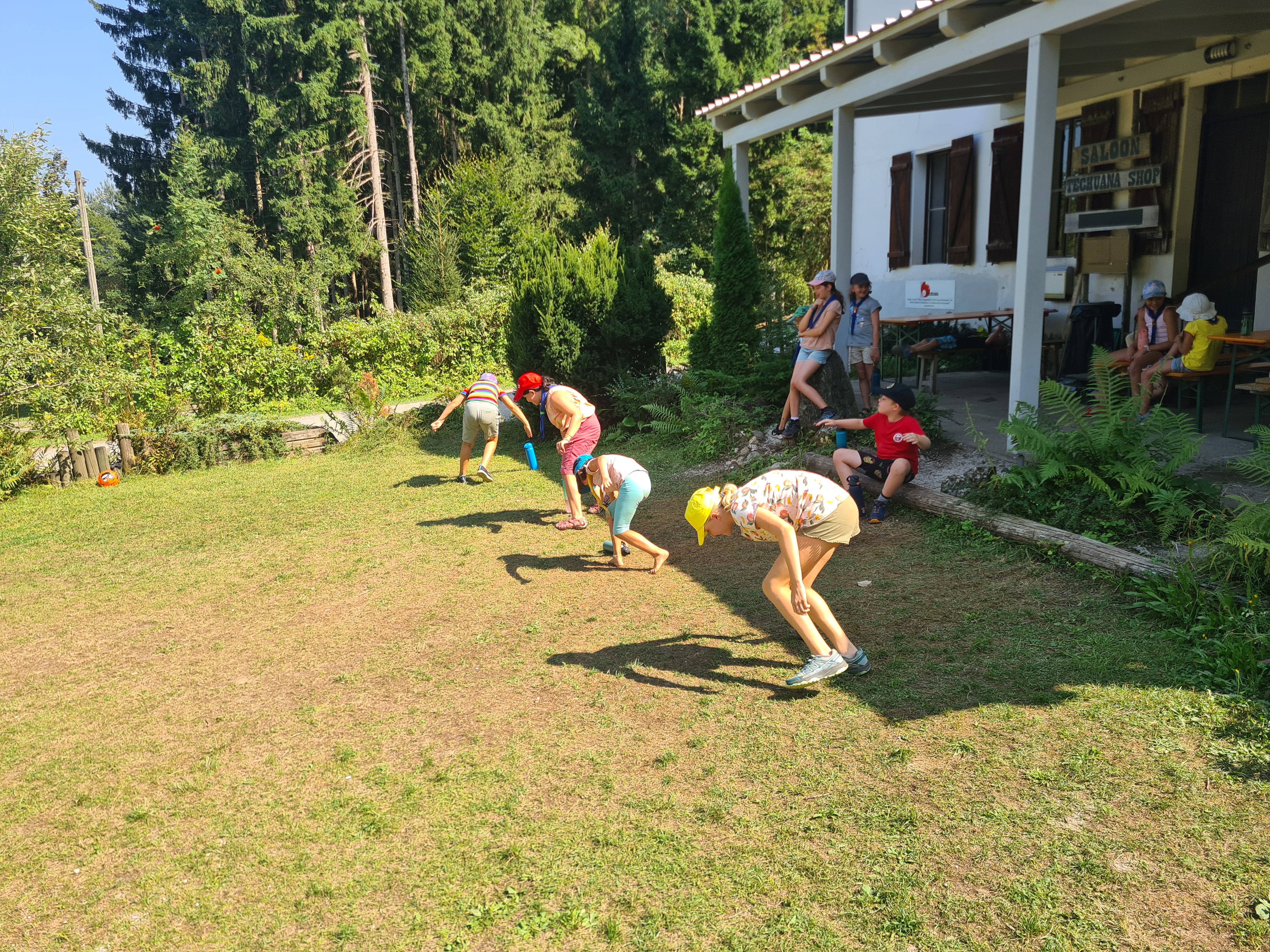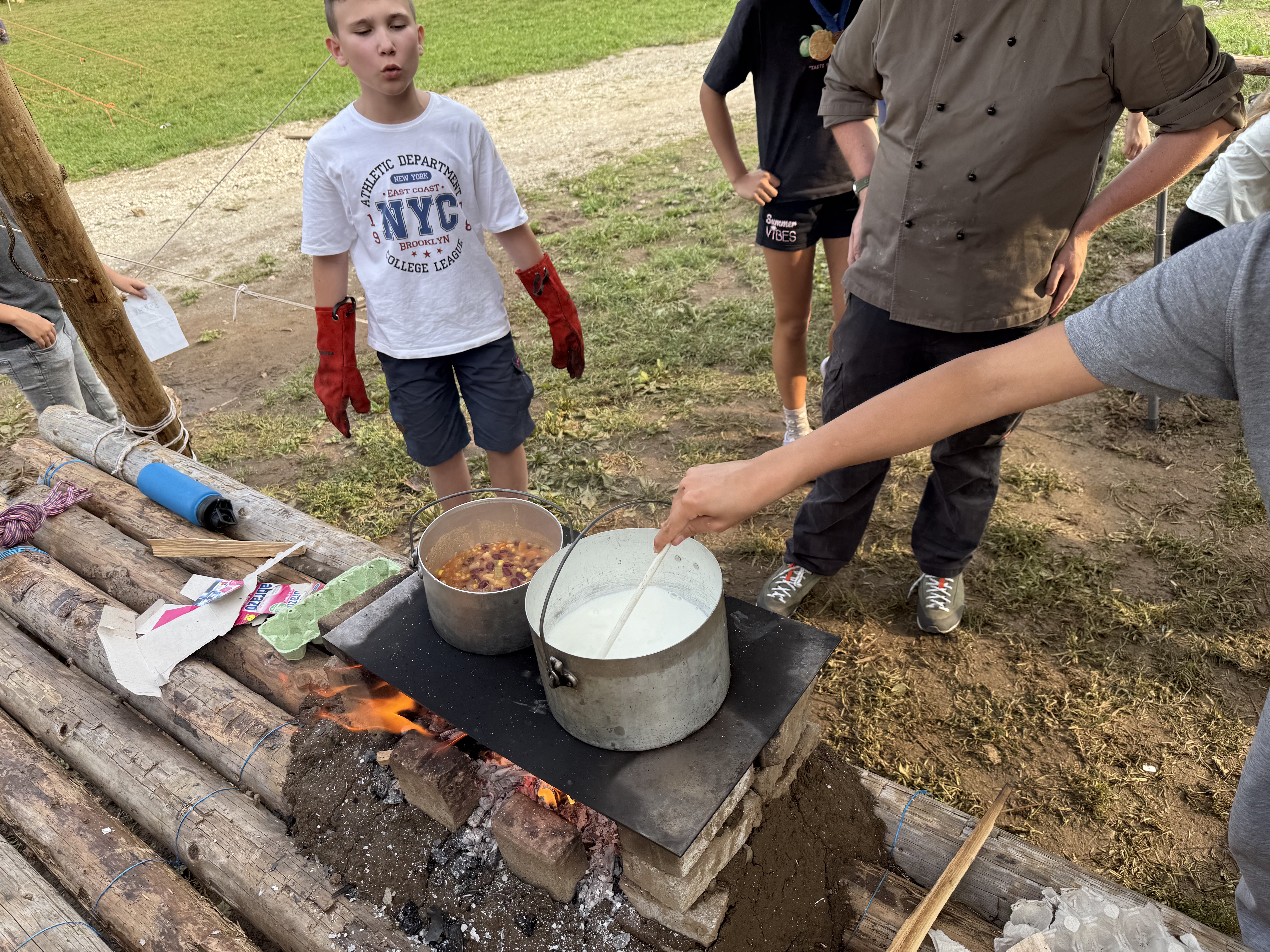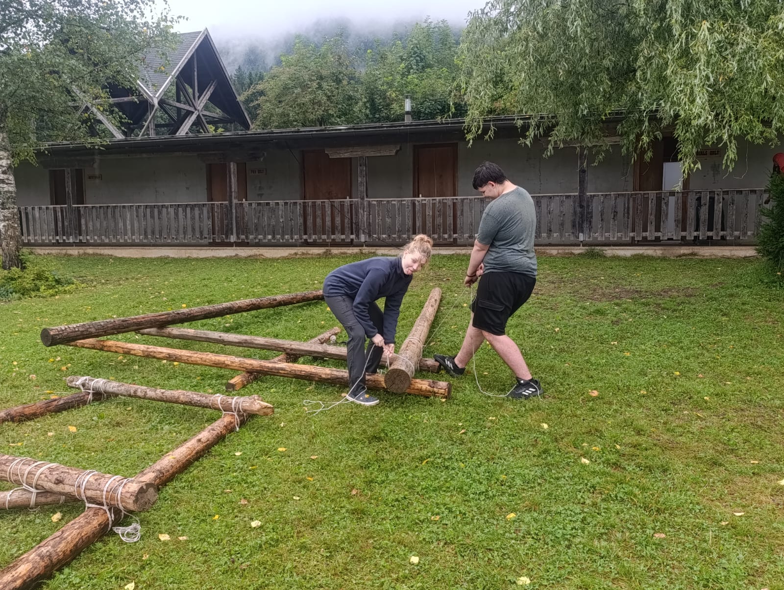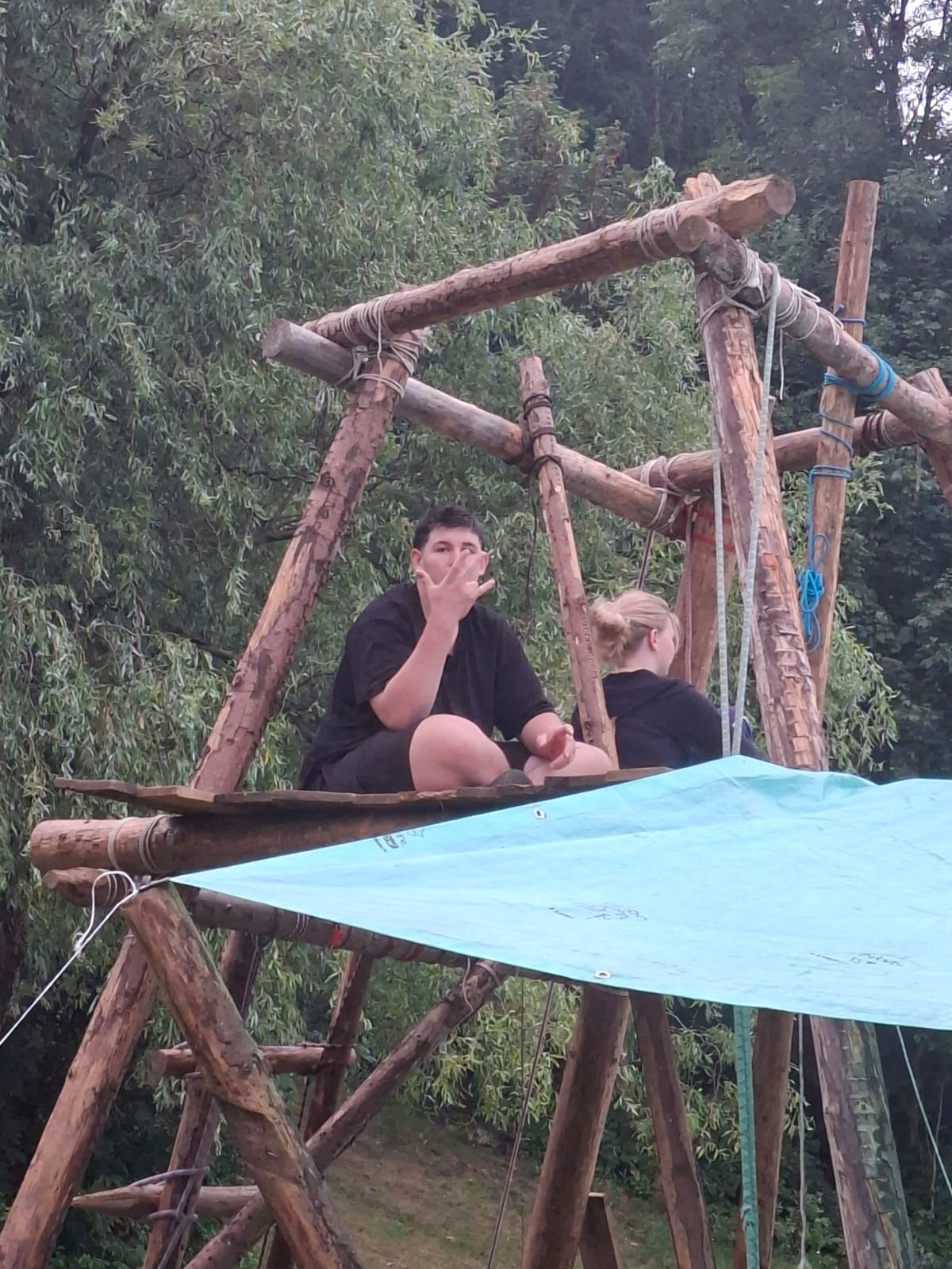 Tja, die Fotos von Montag sind leider erst heute Dienstag in Wien zum Hochladen angekommen – tut mir leid. Umso schöner sind die Bilder! Während die Guides und Späher ihre Doppel-Kochstelle fertiggestellt haben, haben die Caravelles und Explorer sich im Spiel Taskmaster versucht – leider (oder zum Glück?) ohne Beisein des britischen Fernsehens. Ich hoffe, euch die detaillierten Aufgabenbeschreibungen der CaEx nachreichen zu können.