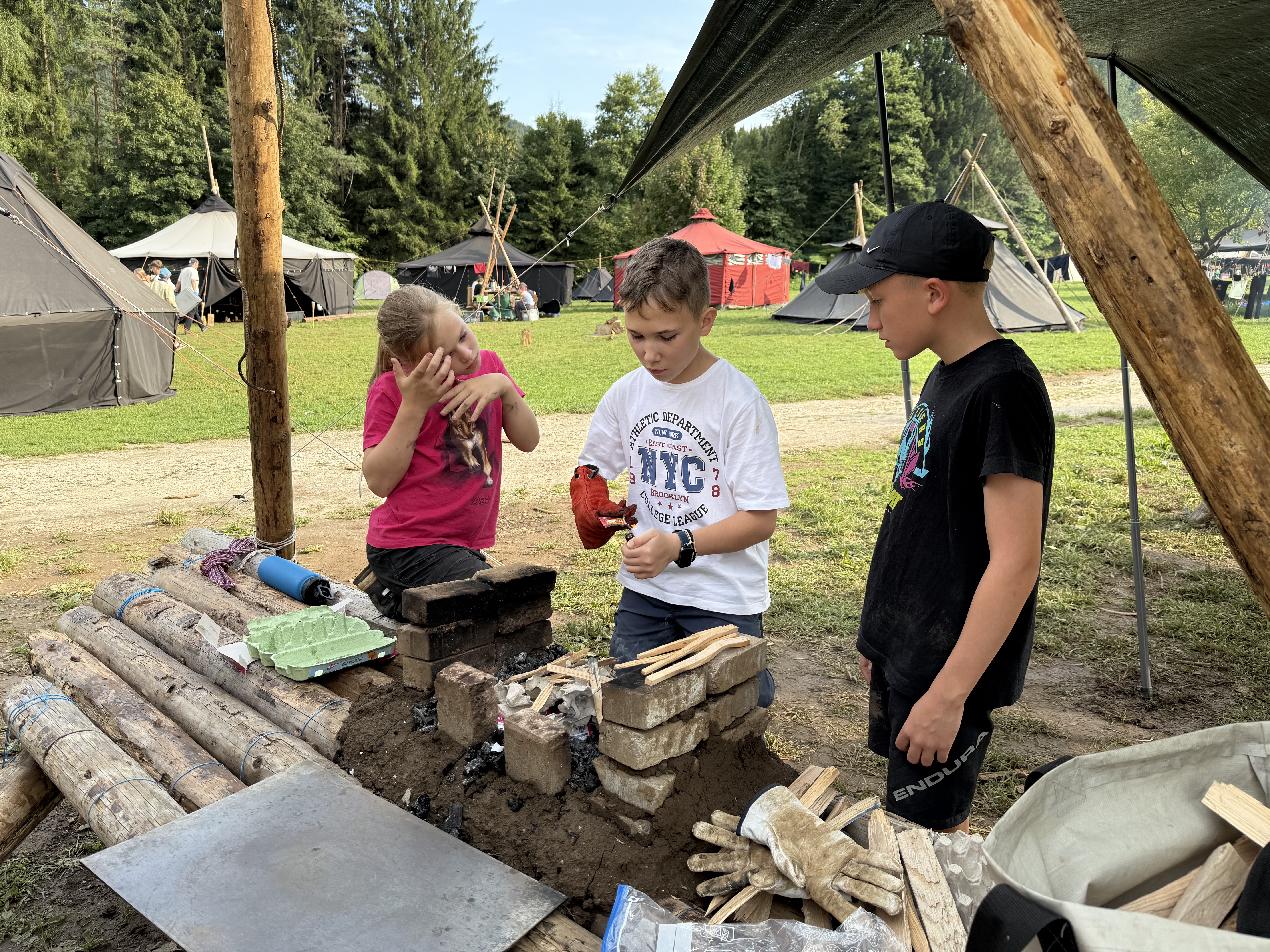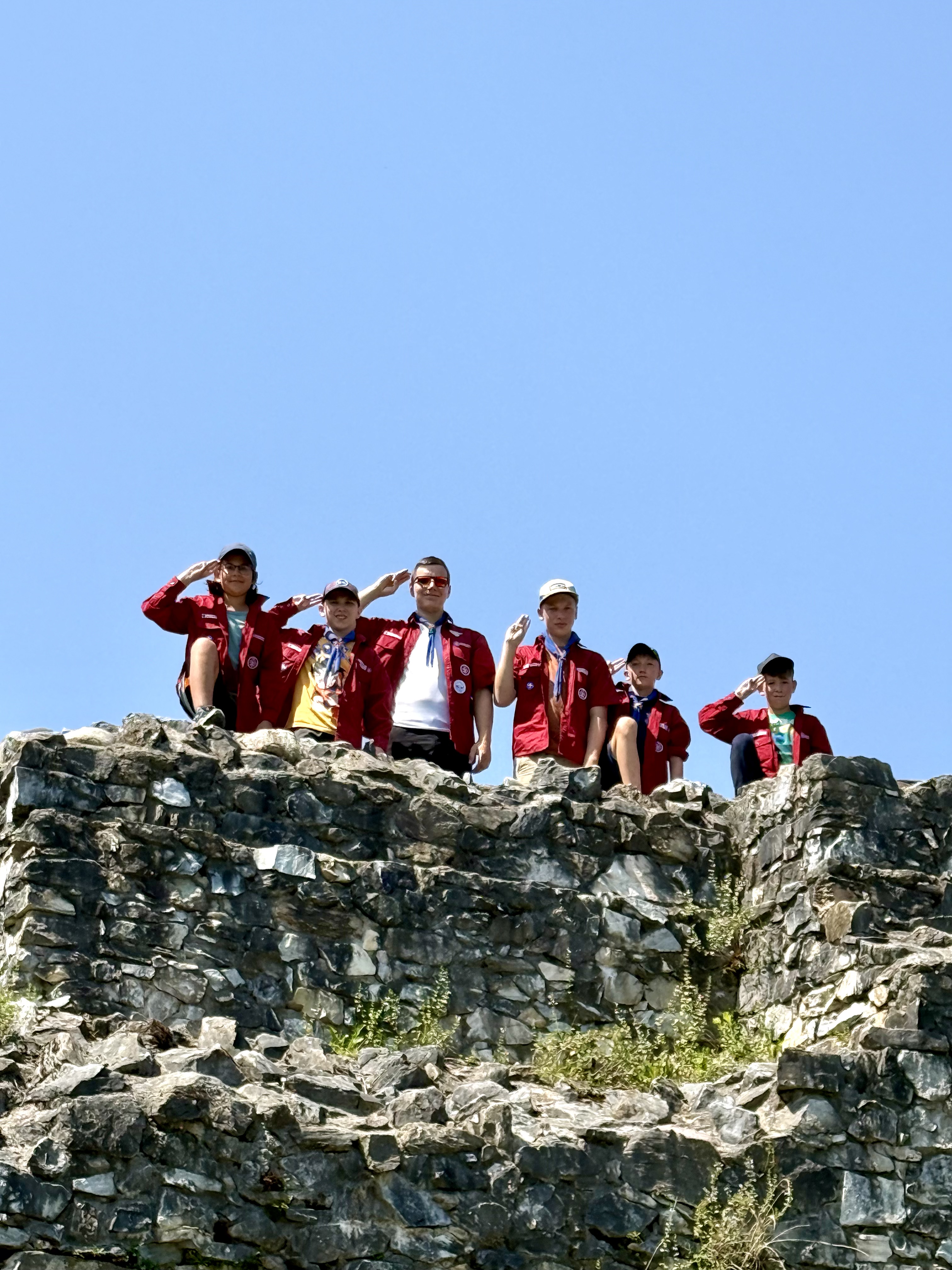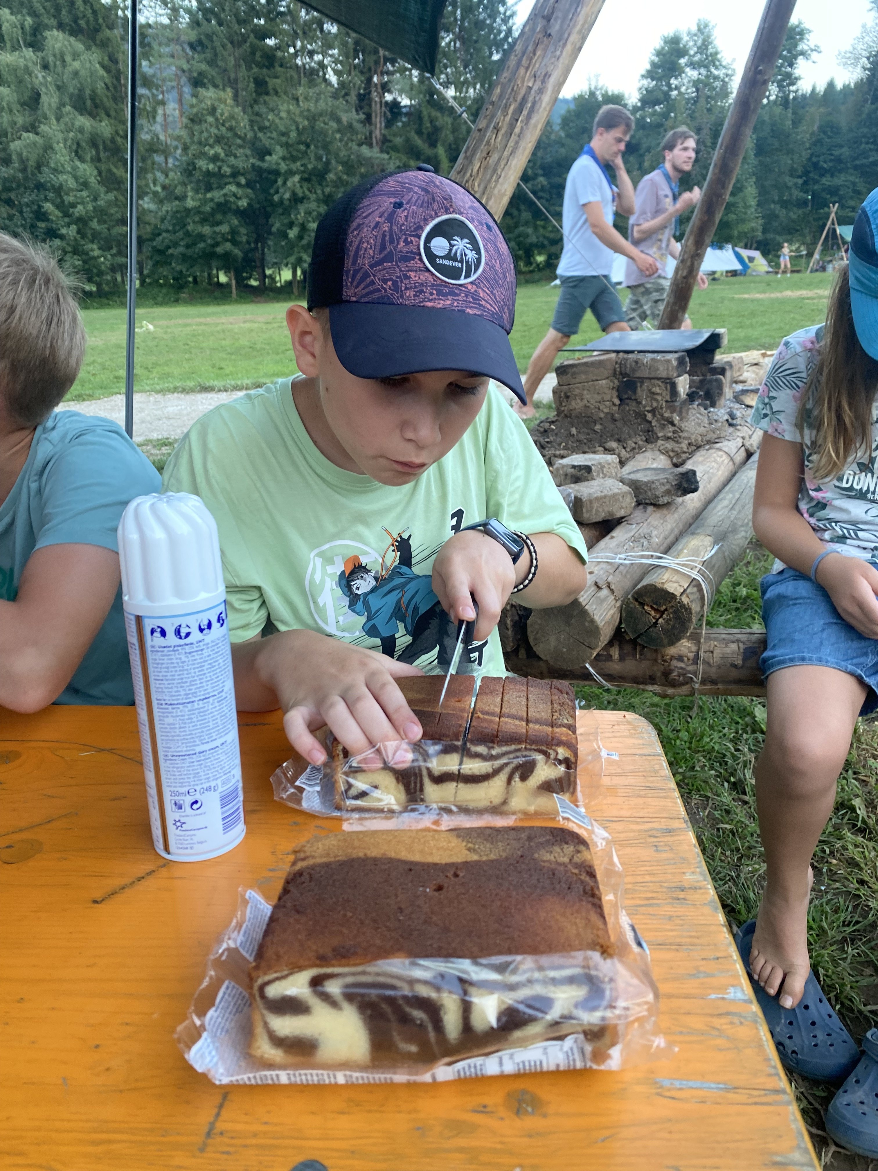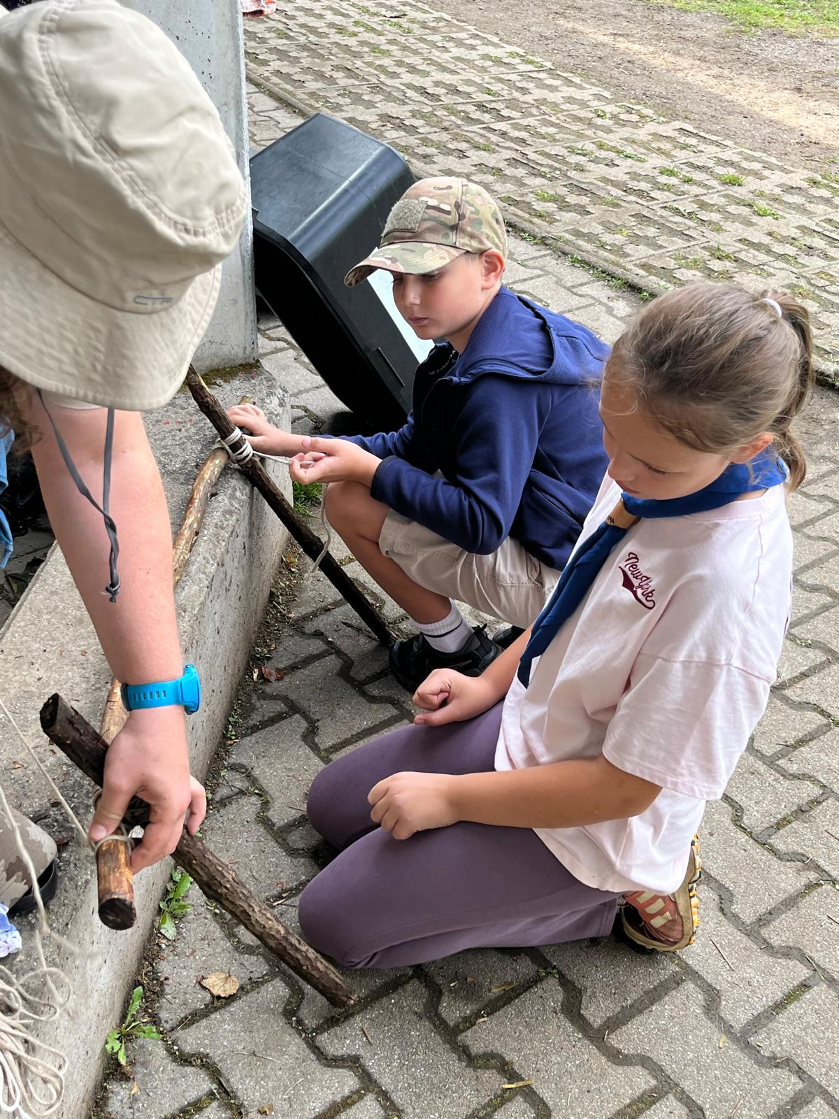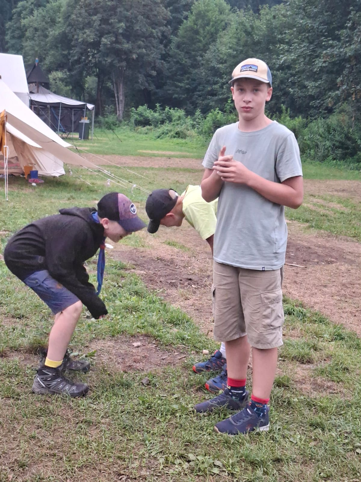 Tja, die Fotos von Montag sind leider erst heute Dienstag in Wien zum Hochladen angekommen – tut mir leid. Umso schöner sind die Bilder! Während die Guides und Späher ihre Doppel-Kochstelle fertiggestellt haben, haben die Caravelles und Explorer sich im Spiel Taskmaster versucht – leider (oder zum Glück?) ohne Beisein des britischen Fernsehens. Ich hoffe, euch die detaillierten Aufgabenbeschreibungen der CaEx nachreichen zu können.