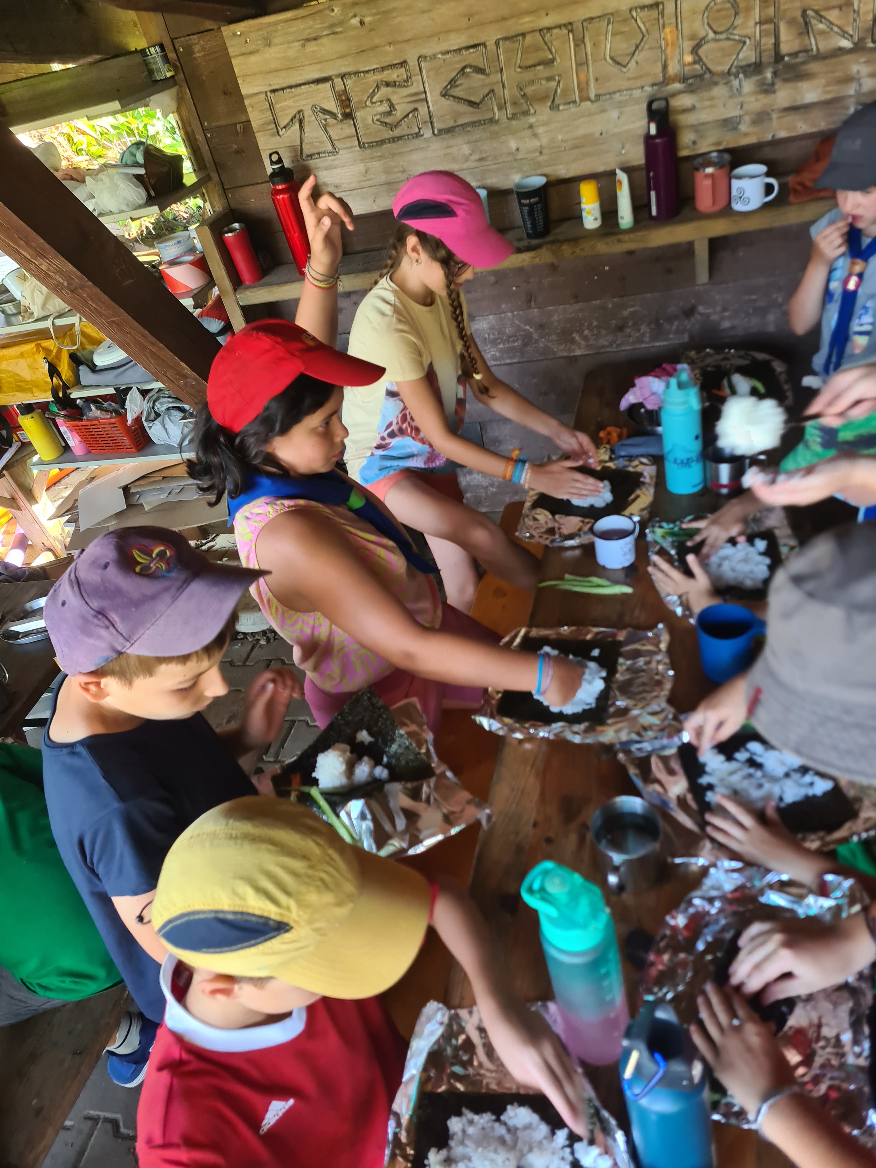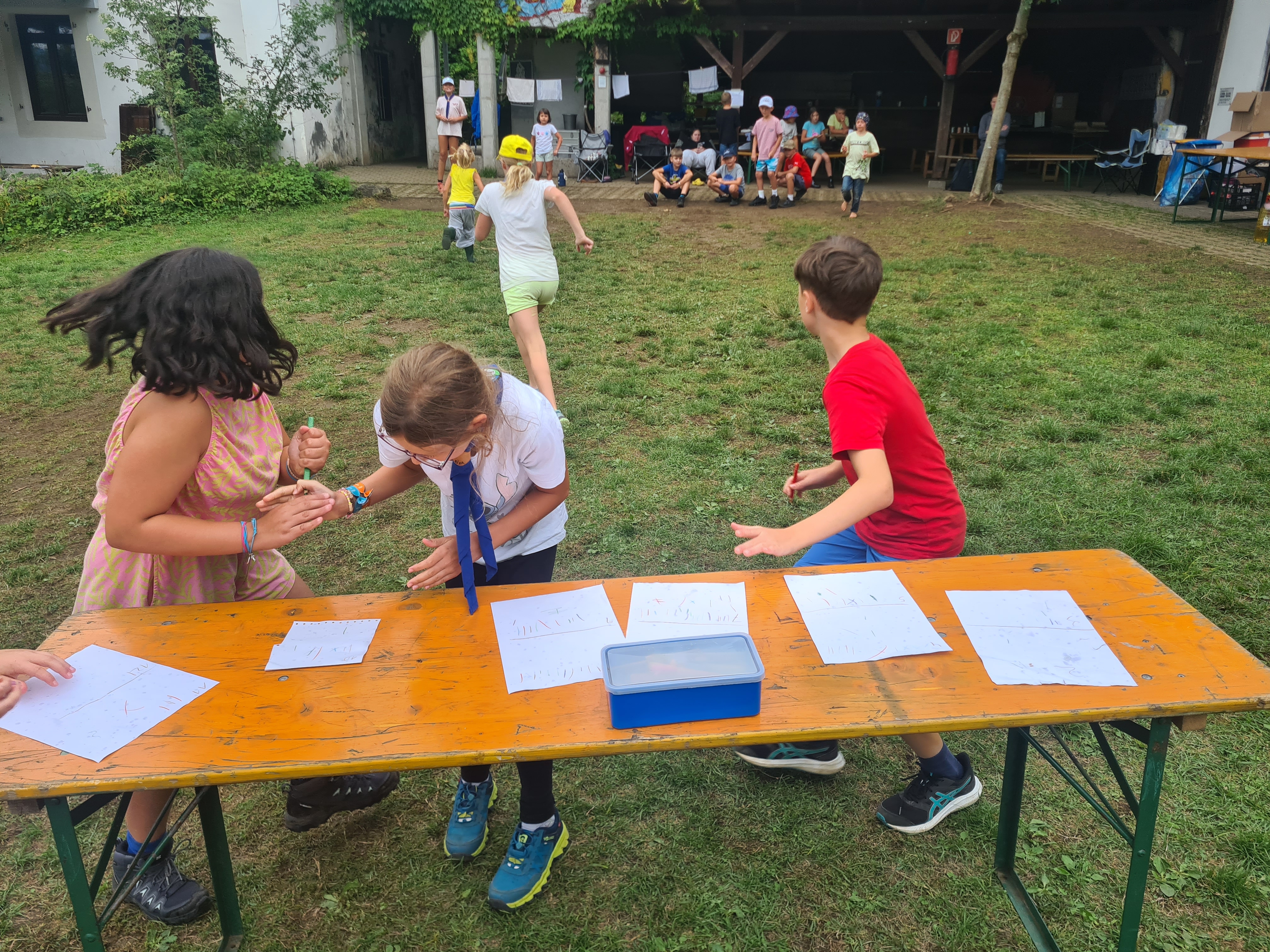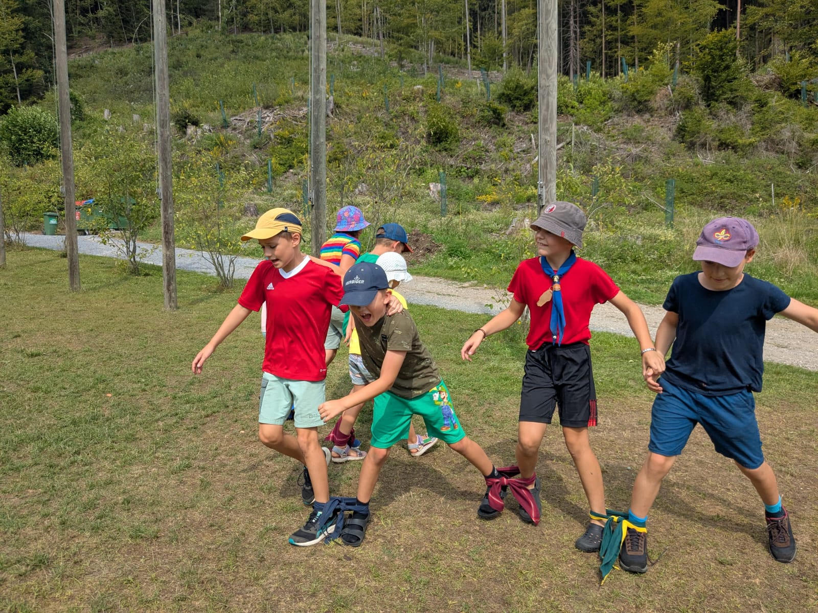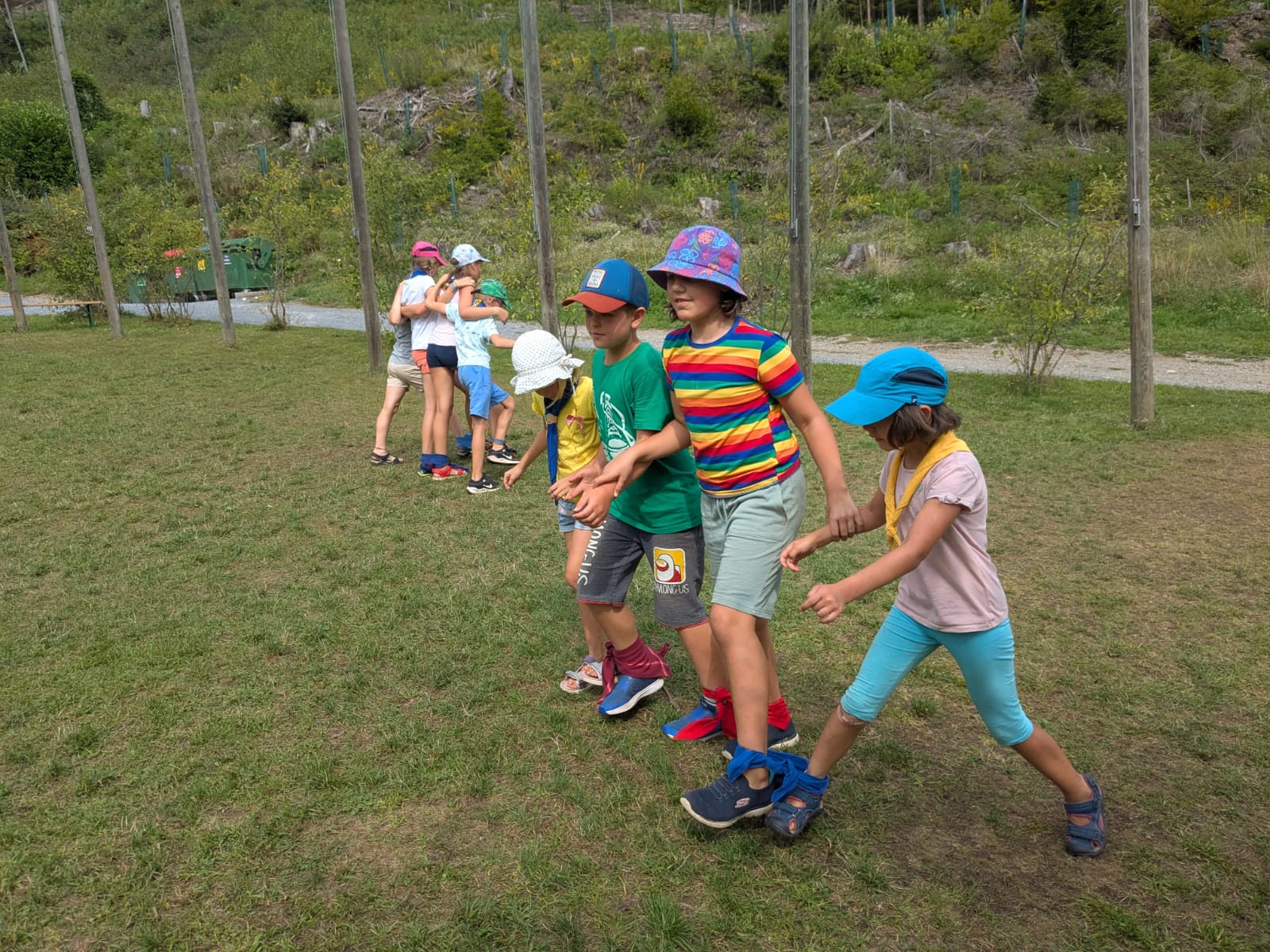 Unterwegs haben wir unter anderem Sushi gemacht, sind einen 18-Bein-Lauf gelaufen, haben Stopptanz zu Samba gespielt, Indische Gewürze gekostet und ein Wettrennen um die meisten Knoten gemacht.