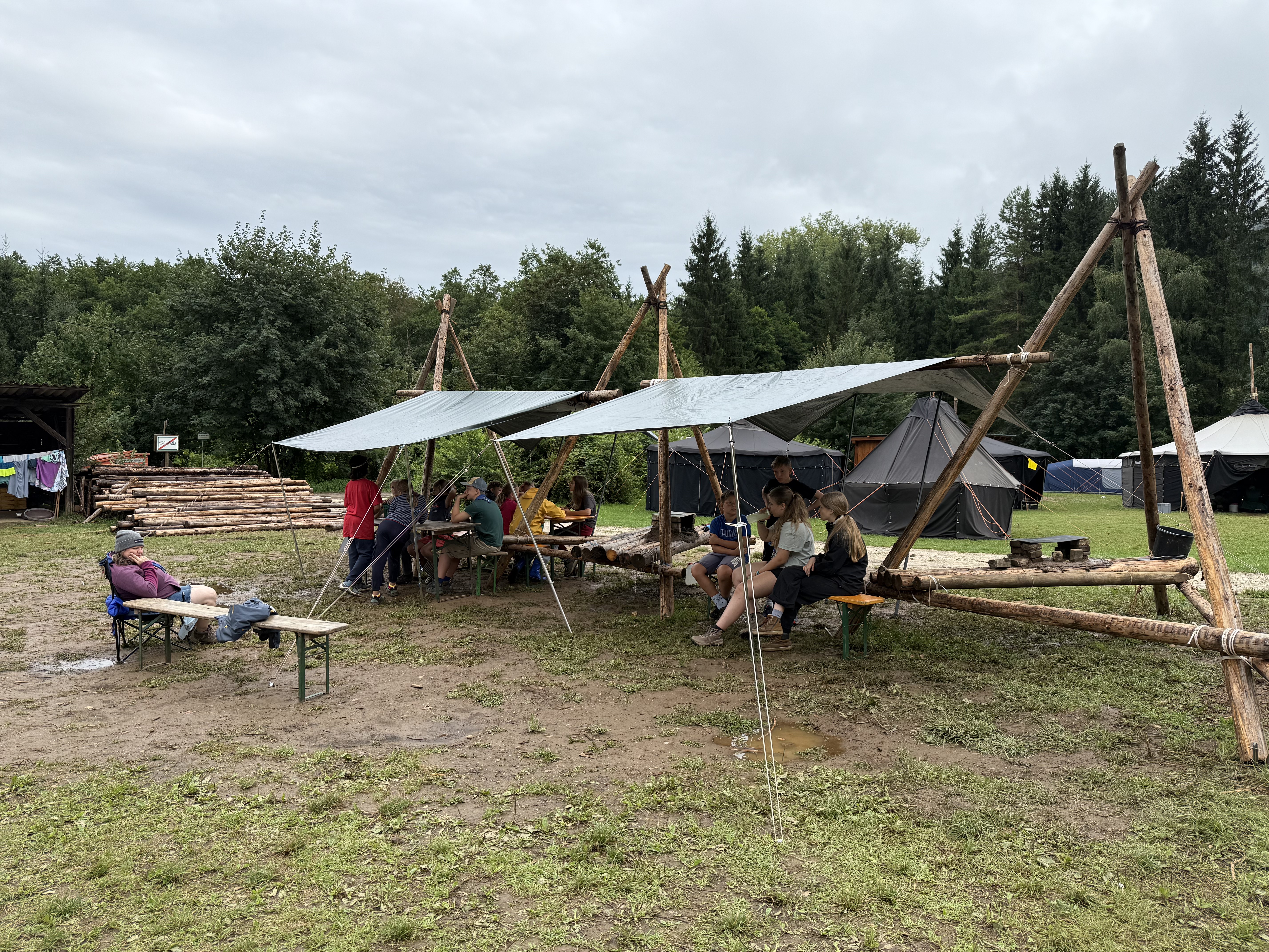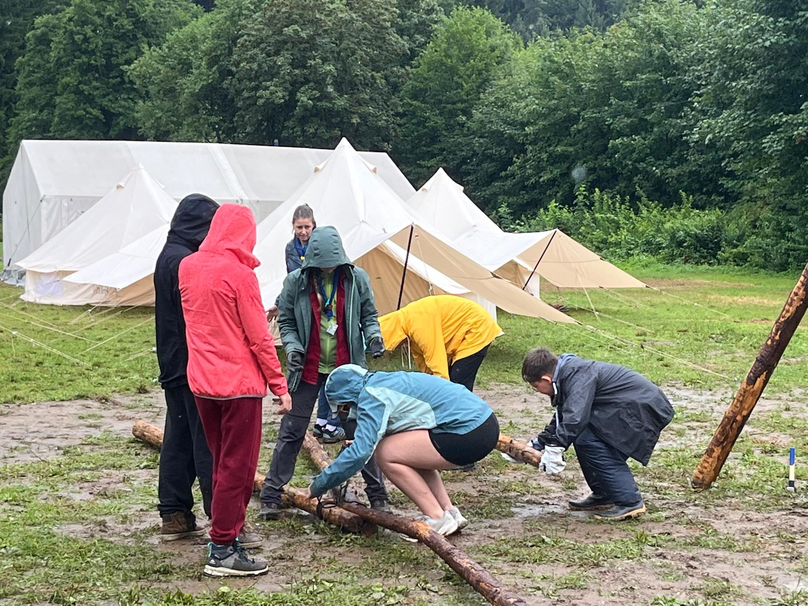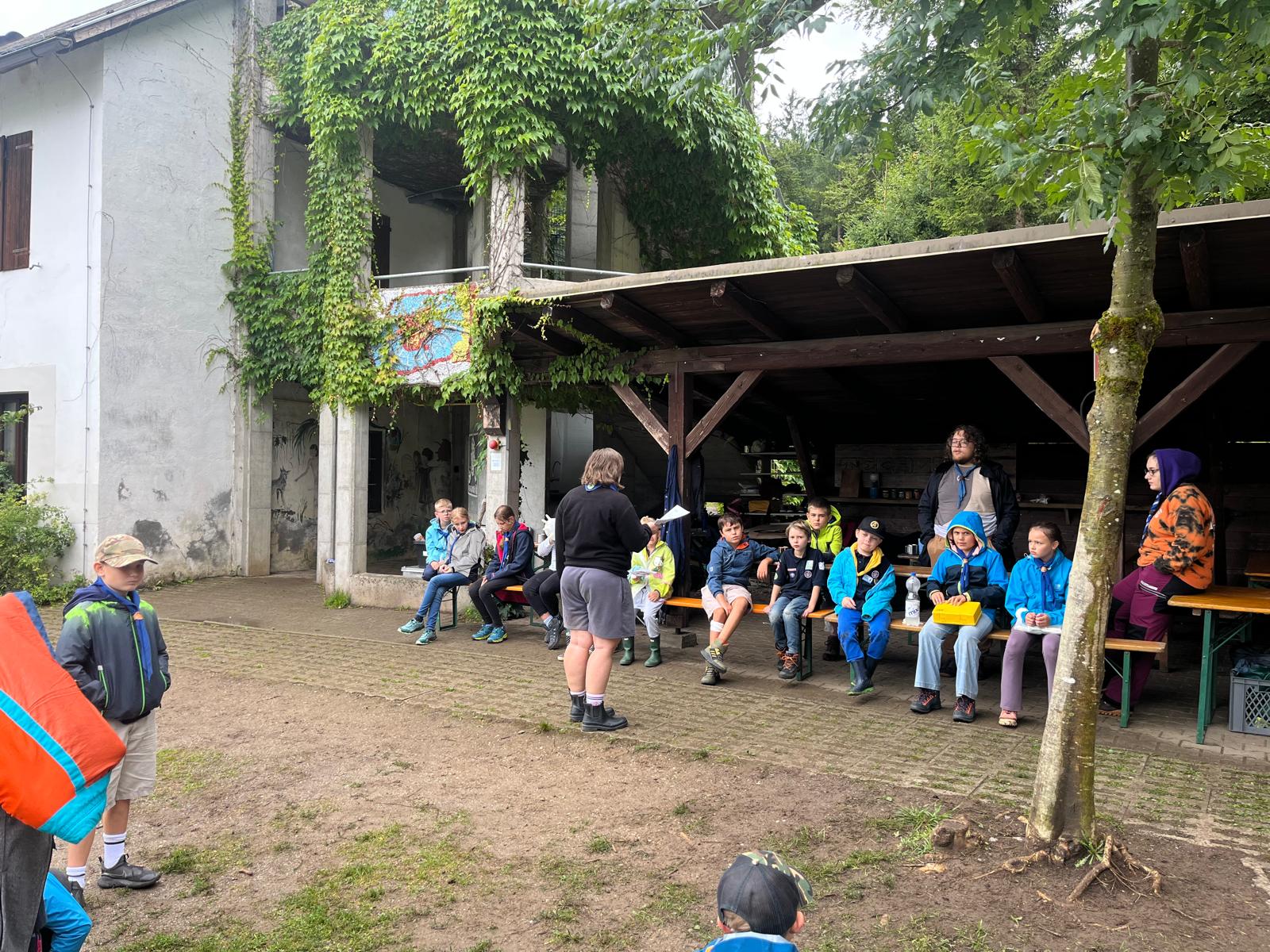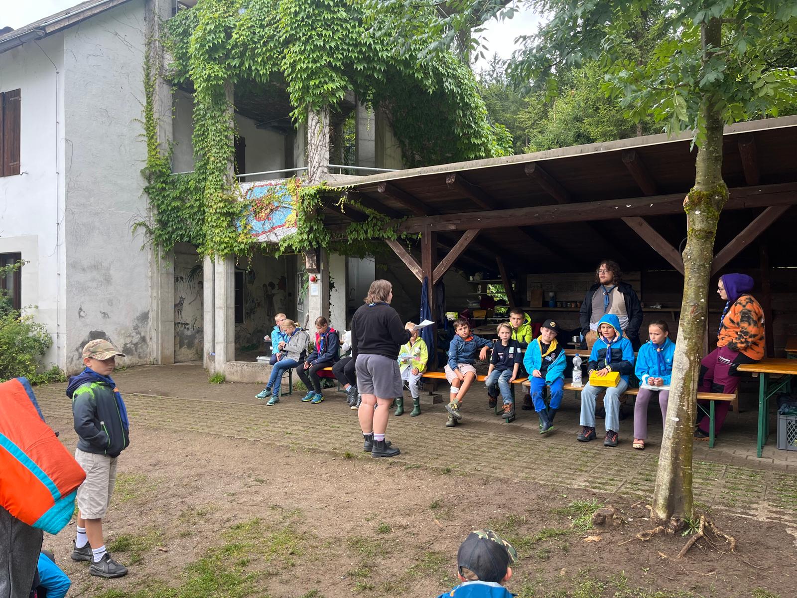 GuSp, CaEx und RaRo sind voll in den Kochstellen-Bau gestartet, trotz Regen am Vormittag. WiWö haben Erste Hilfe geübt und sich auch an einem kleinen Lagerbau versucht.