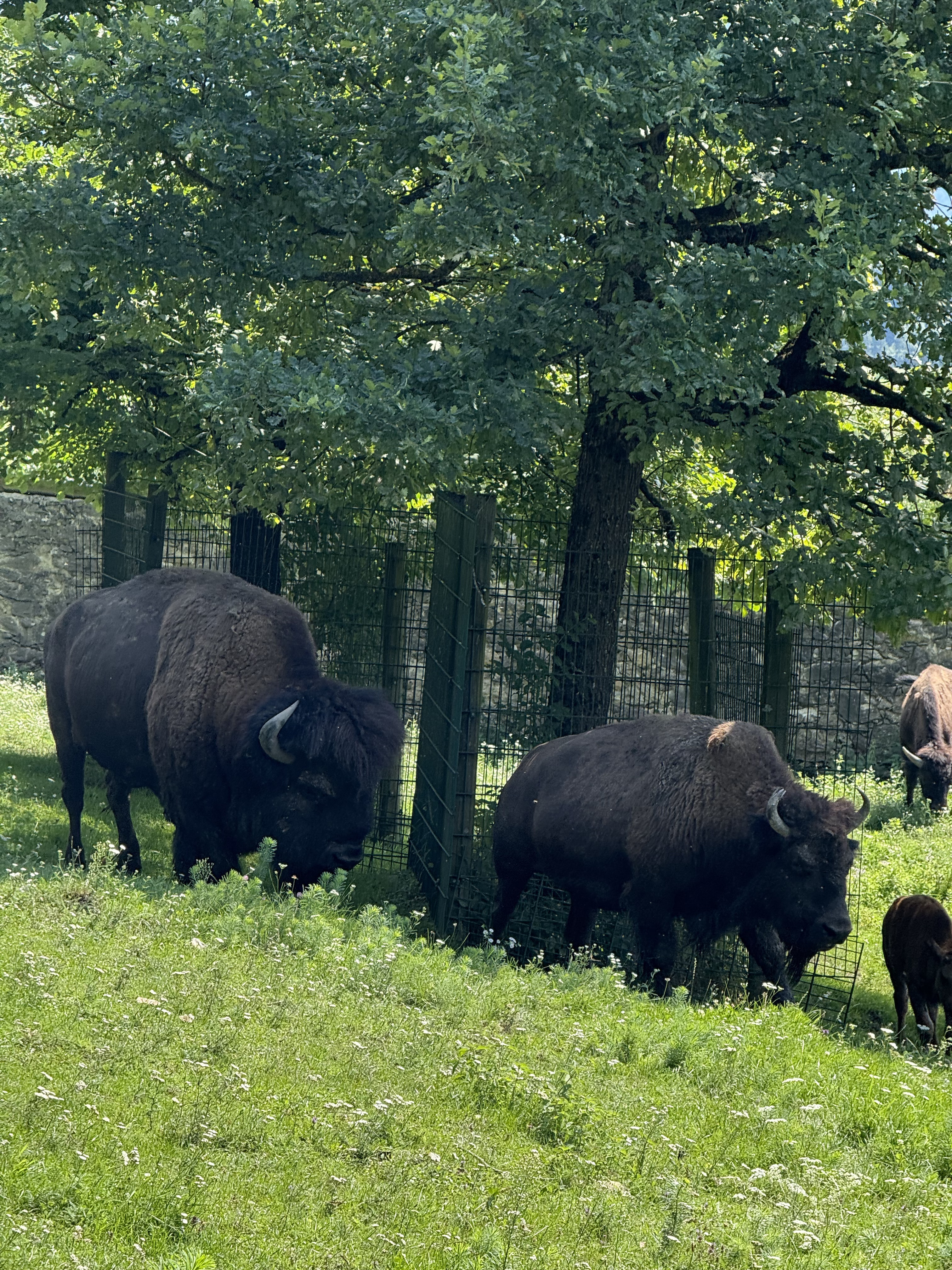 Luchse und Bisons haben wir zwar nur im Gehege gesehen, aber Pfaue, Steinböcke, Mufflons und Rehe sind sehr knapp an uns vorbeigegangen!
